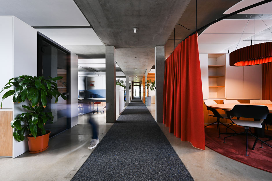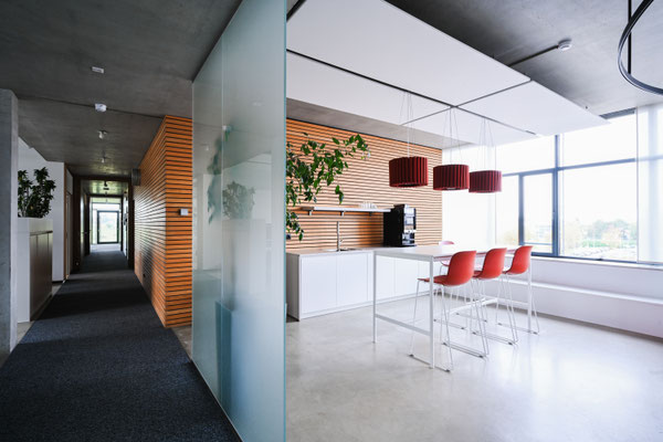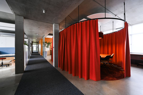 des espaces de détente, et une ambiance acoustique maîtrisée grâce à des mesures spécifiques. Le résultat est un environnement de travail à la fois agréable et