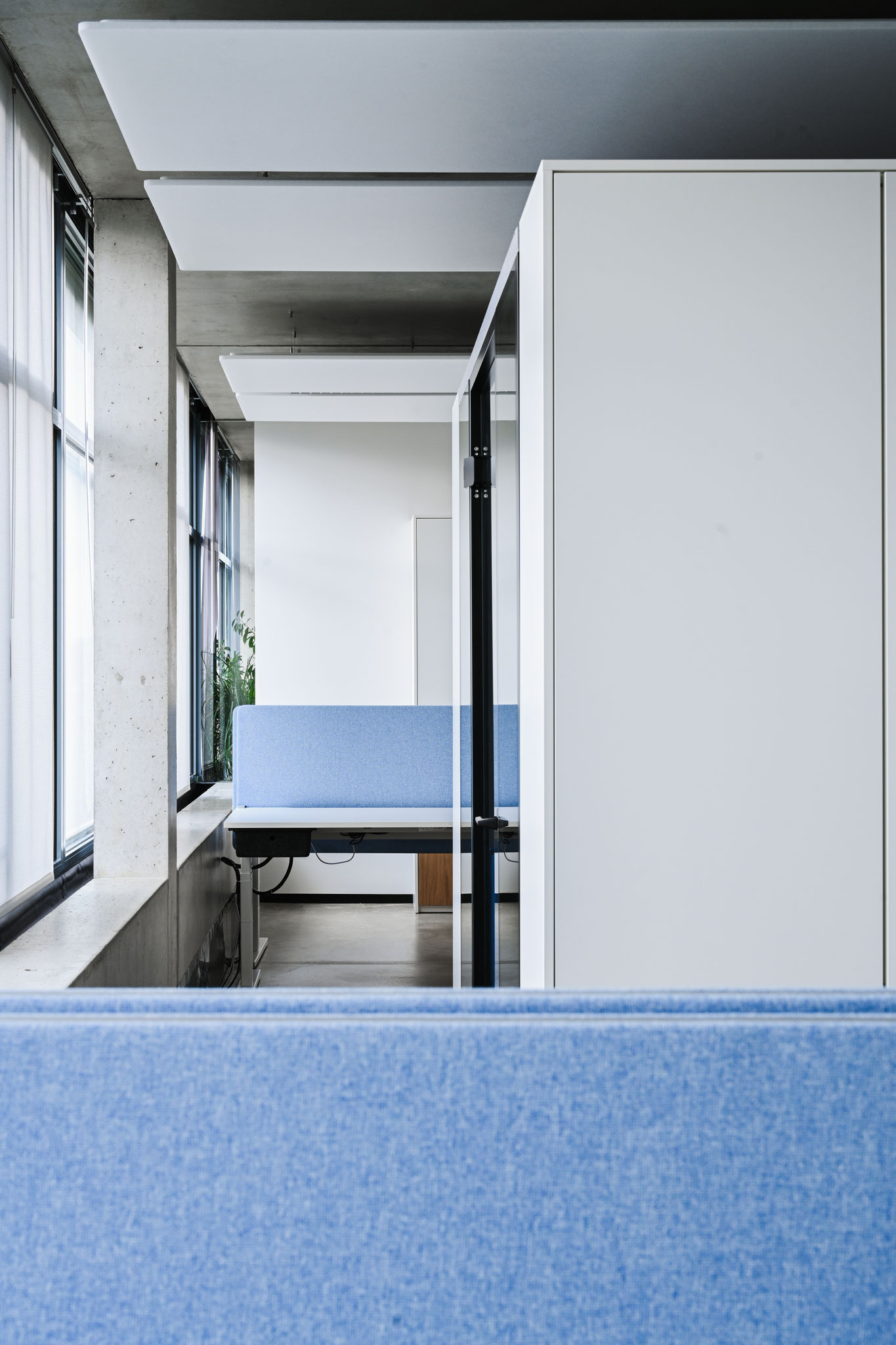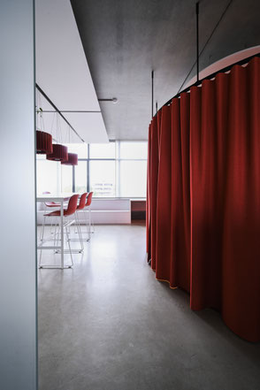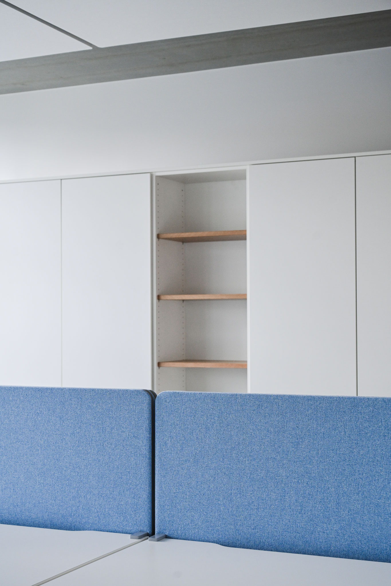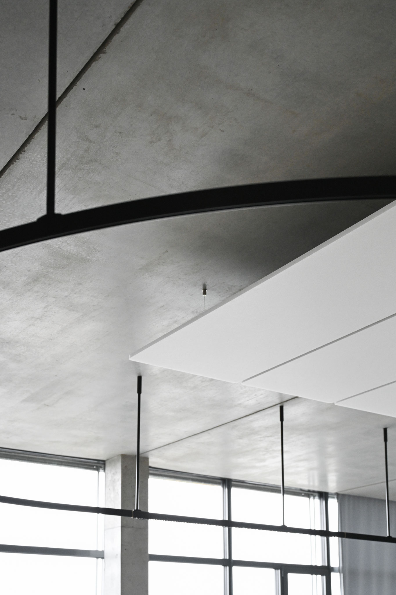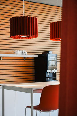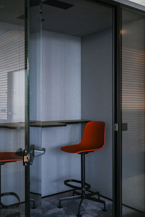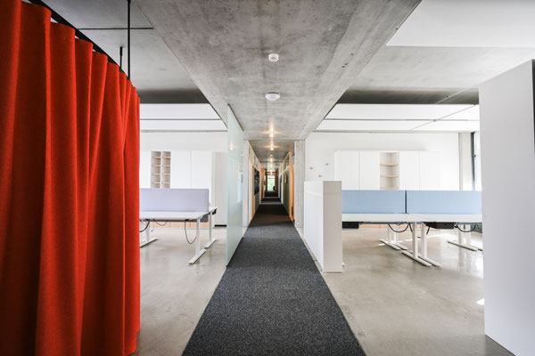 L’acoustique a fait l’objet d’une attention toute particulière. Des panneaux au plafond, des cloisons textiles et des matériaux absorbants ciblés ont permis de réduire la réverbération et d’améliorer l’intelligibilité de la parole.
