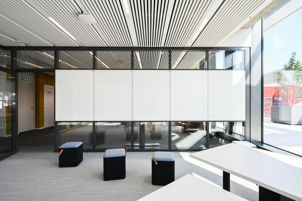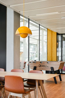 Les Haut Fourneaux de Belval, monuments industriels emblématiques, ont inspiré toute la conception, à la fois esthétique et symbolique de ce projet. L'Atelier Compostelle a fait le choix d’un espace entièrement décloisonné, rythmé par des jeux de transparence et des repères visuels nets. Une manière de délimiter les zones et leurs fonctionnements, sans jamais alourdir la lecture de l’espace.